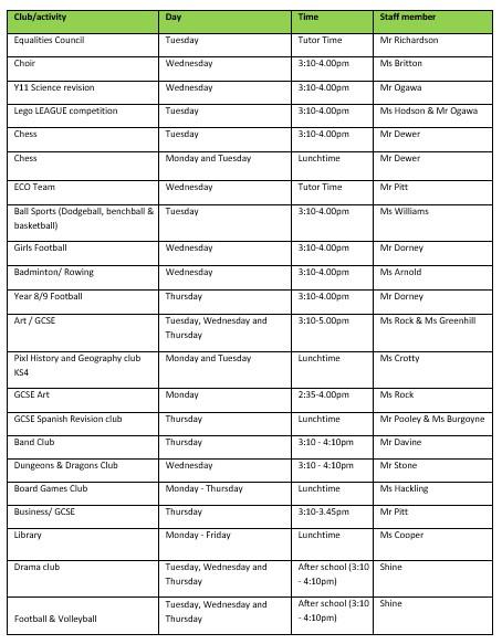 Please note that all clubs will run dependant on staffing, and may be cancelled at short notice.